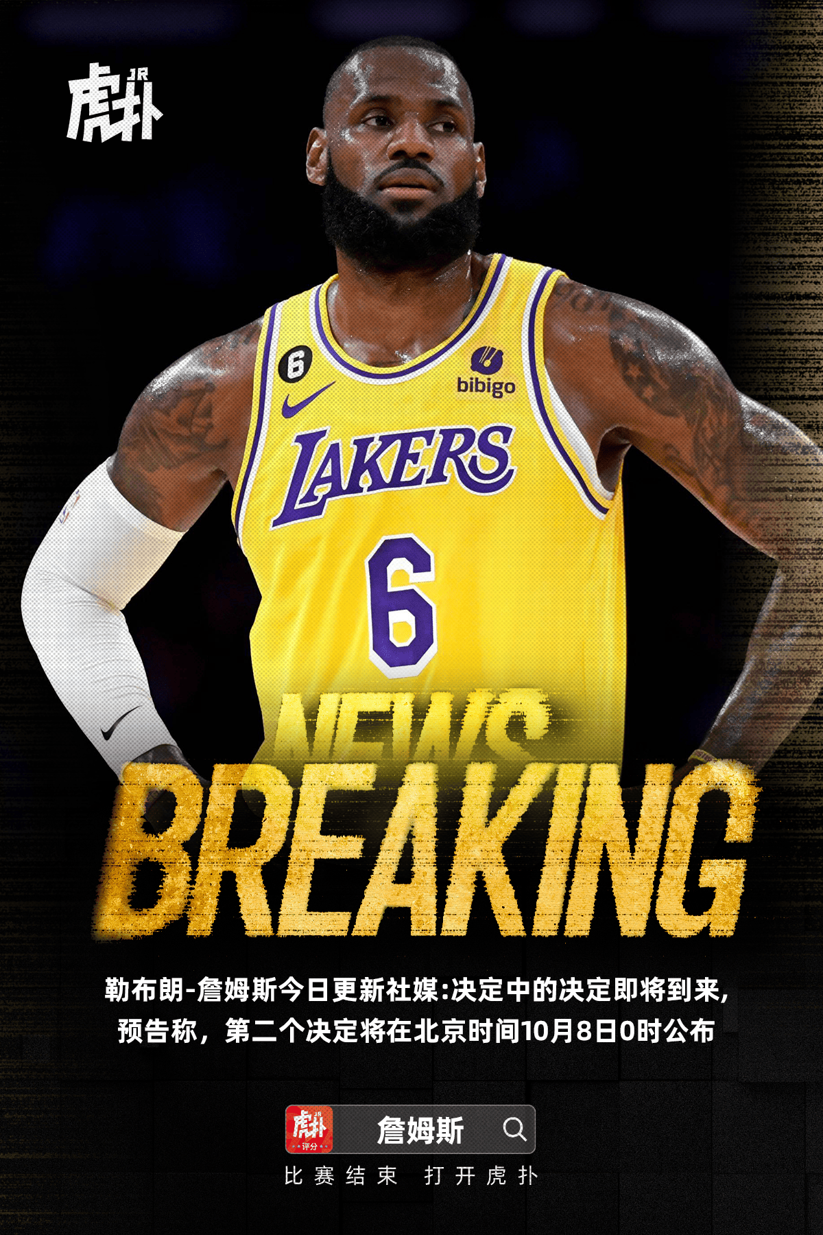 虎撲10月07日訊 湖人球員勒布朗-詹姆斯今日更新社媒:10月7日,美國(guó)東部時(shí)間中午12點(diǎn),媒發(fā)明日決定中的布預(yù)布決決定即將到來(lái)。