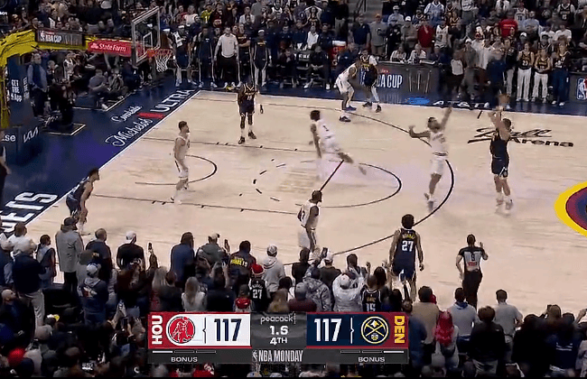 NBA常規(guī)賽,掘金主場迎戰(zhàn)火箭的入加比賽正在進(jìn)行中。