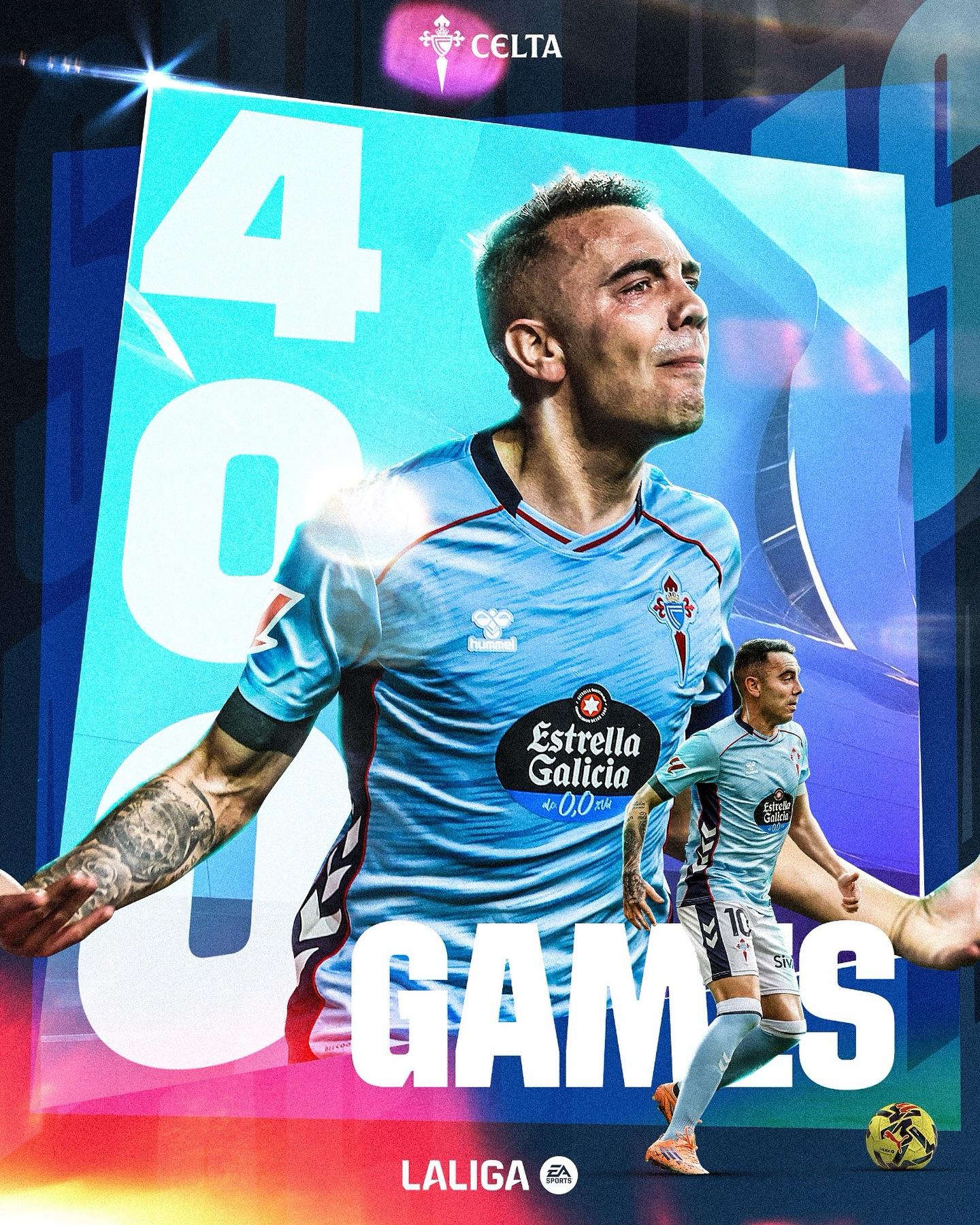 本場(chǎng)也是西甲阿斯帕斯生涯的第400場(chǎng)西甲比賽,西甲官方發(fā)布海報(bào)祝賀并配文:絕對(duì)的板替補(bǔ)登比賽傳奇。