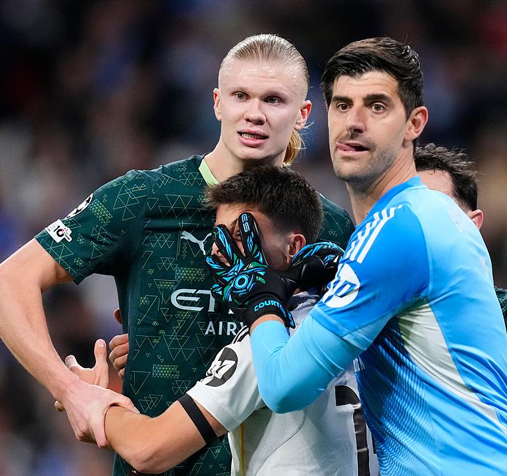 在比賽中的定位隊(duì)友一次定位球防守中,居萊爾領(lǐng)命防守哈蘭德,球領(lǐng)被隊(duì)友庫(kù)爾圖瓦不慎拍中臉部。命防
