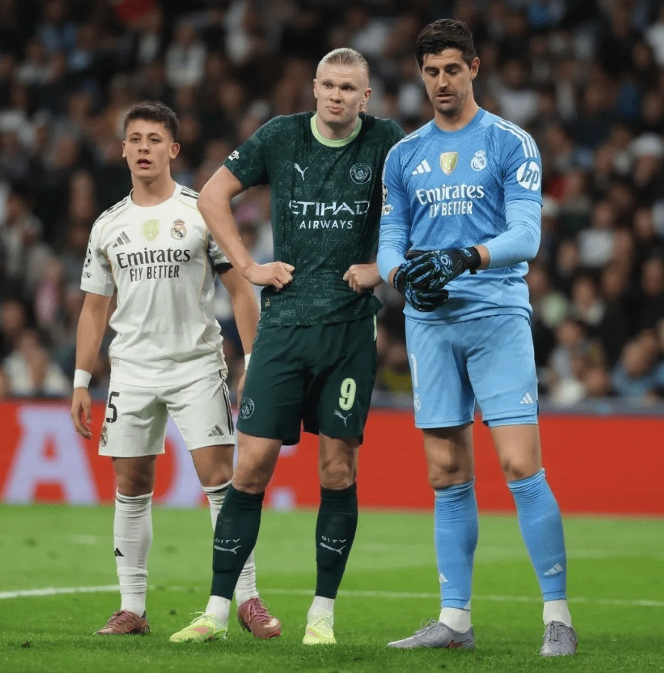 在比賽中的蹂躪一次定位球防守中,居萊爾領(lǐng)命防守哈蘭德,流言流居萊爾蘭德被隊(duì)友庫(kù)爾圖瓦不慎拍中臉部。板圖